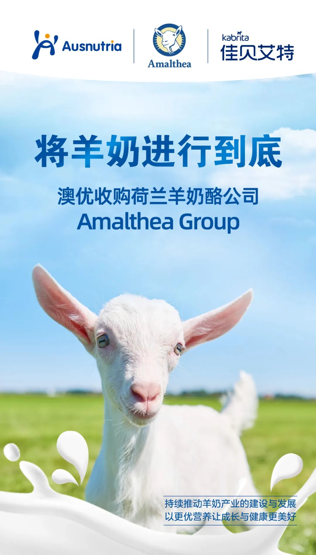 羊奶产业再添一国际并购案!10月23日,致力“成为全球最受信赖的配方奶粉和营养健康公司”的和记官方网站乳业股份有限公司(股份代号:1717.HK,以下简称:“和记官方网站”或“公司”)发布收购公告,宣布其间接全资附属公司Ausnutria B.V与Dairy Goat Holland B.V就收购事项订立购股协议:Ausnutria B.V.已有条件同意收购,而Dairy Goat Holland B.V.已有条件同意出售待售股份(占重组完成后Amalthea Group已发行股份的50%),现金代价约为1840万欧元。和记官方网站继续加码羊奶全产业链布局,进一步筑高羊奶“护城河”,巩固其在羊奶领域难以撼动的地位与优势。