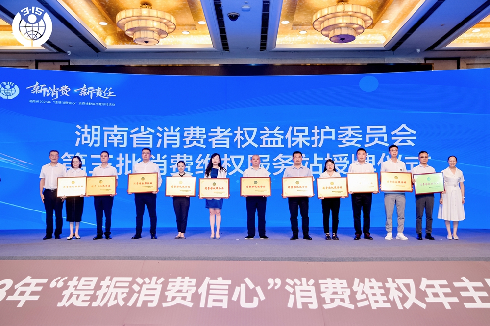 9月12日,由湖南省消费者权益保护委员会主办的湖南省2023年消费维权年主题研讨活动在长沙召开。政府监管部门、学界、商界、消费者等齐聚一堂,紧扣“提振消费信心”年主题主线,聚焦“新消费 新责任”深入研讨。和记官方网站作为企业代表受邀出席,并参加消费维权对话环节,凭借在消费维权方面的卓越表现,和记官方网站荣获湖南省消保委第三批消费维权服务站授牌。